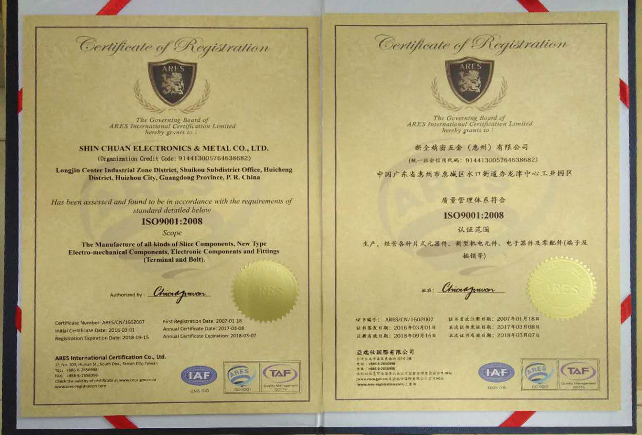 工場出荷時の検査標準(zhǔn)の証明(míng)書